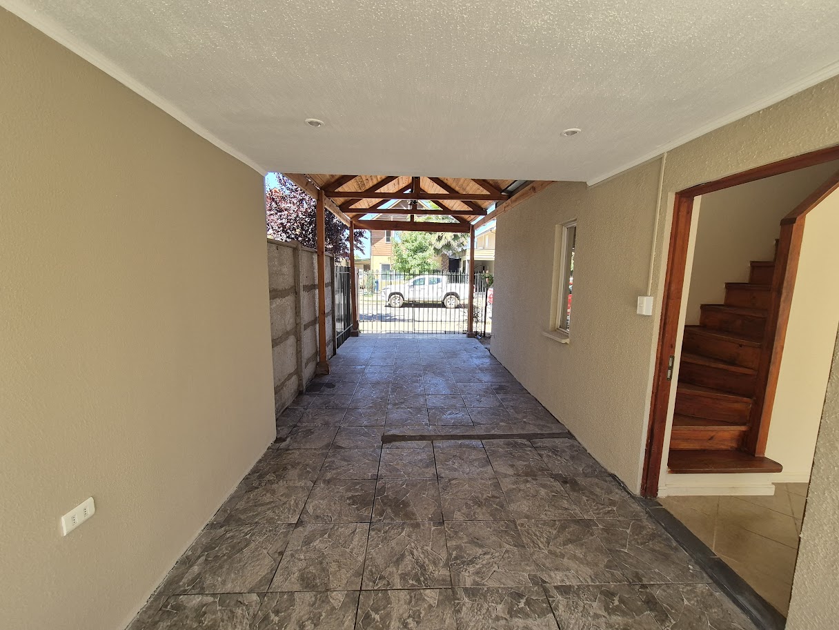 Estacionamiento para tres vehículos techado.